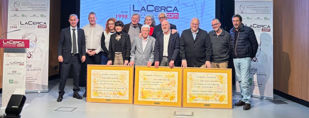 El pasado 12 de febrero, el Grupo Multimedia de Comunicación ‘La Cerca’ celebró la entrega de los II Premios Nacionales José María Roncero, un evento que reunió a numerosas entidades sociales y económicas de Albacete y Castilla-La Mancha para reconocer la labor de quienes trabajan en la defensa de los consumidores.