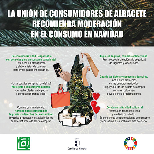 La Unión de Consumidores de Albacete nos recomienda seguir pautas para un consumo consciente en esta Navidad. Establece un presupuesto: Antes de salir de compras, fija un presupuesto y elabora listas para evitar gastos innecesarios. ¡No te dejes llevar por la tentación! Infórmate antes de comprar: Utiliza Internet para conocer productos y establecimientos. La informaciónSigue leyendo «¡Celebremos unas fiestas responsables y solidarias!»